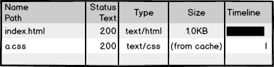 那就看看a.css的请求吧,如果每次用户访问页面都要加载,是不是很影响性能,很浪费带宽啊