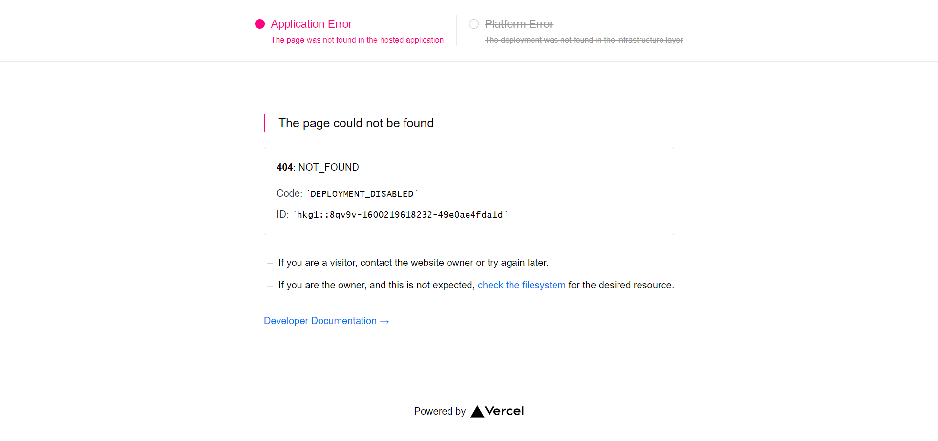 Vercel(ZEIT) Application Error出现部署问题 前言当你什么也没做的时候Vercel突然就给你网站报错Application Error The page was not found in the hosted applicationIf you are a visitor, contact the website owner or try again later.If you are the owner, and this is not...
